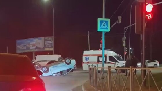 Кадры появились в Сети. На них запечатлена «Лада-Гранта», лежащая колесами вверх. На месте работают медики.