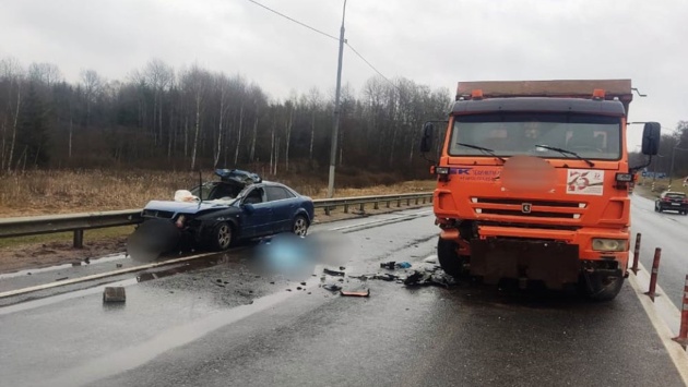 В Валдайском округе Новгородской области автомобиль Audi выехал на встречную полосу и столкнулся с "КамАЗом". Водитель легковушки погиб, рассказали в региональной Госавтоинспекции.