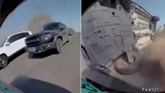 Виновник происшествия, запечатлённого видеорегистратором, установленным в легковом автомобиле, передвигающемся в попутном направлении, попытался вклиниться в поток, но не рассчитал габаритов своего транспортного средства, в результате чего оно перевернулось.Судя по кадрам, предоставленной Рай77° видеозаписи, владелец другого легкового автомобиля не справился с управлением, когда в его средство для передвижения врезался внедорожник и присоединился к ДТП, последствия которого не уточняются.