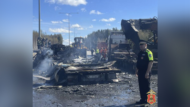 Сегодня в Калининском районе Тверской области в 9 часов 53 минуты на 196 километре скоростной автомагистрали М-11 «Нева» произошло дорожно-транспортное происшествие с участием нескольких транспортных средств. Предварительно установлено, что во время движения у автомобиля Mercedes-Benz Actros, за рулём которого находился мужчина 1983 года рождения, на ходу разорвалось колесо. От этого тягач совершил боковое столкновение с перевозившим экскаватор попутным грузовиком SITRAK под управлением мужчины 1979 года рождения, а тот по инерции наехал на двигавшийся впереди автомобиль Omoda, за рулём которого находился молодой человек 2002 года рождения. Далее на месте аварии произошло возгорание. В результате ДТП пострадал водитель автомобиля Mercedes. В настоящее время на месте работают экстренные службы. Полицейские устанавливают все обстоятельства произошедшего. Движение по трассе в сторону Москвы затруднено. На данный момент сотрудники Госавтоинспекции обеспечивают пути объезда через 208 км трассы М-11.
