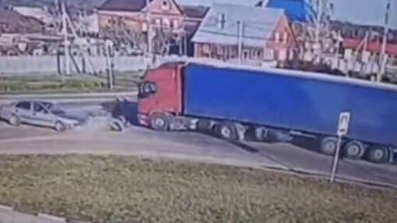 В Краснодарском крае на видео попало, как 12-летний водитель улетел под фуру
