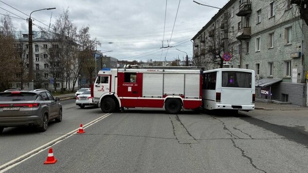 В Кирове столкнулись пассажирский автобус и пожарная машина