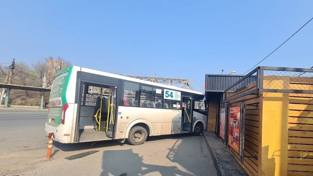 В столице Приморского края водителя пассажирского автобуса маршрута №54 врезался в две легковушки и влетел в придорожное кафе.