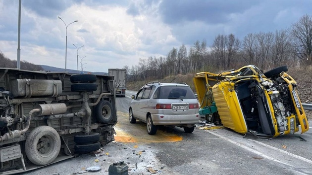 В Приморском крае на федеральной трассе "Уссури" между Уссурийском и Владивостоком произошло дорожно-транспортное происшествие с участием сразу трех грузовых автомобилей, сообщает Telegram-канал прокуратуры региона.