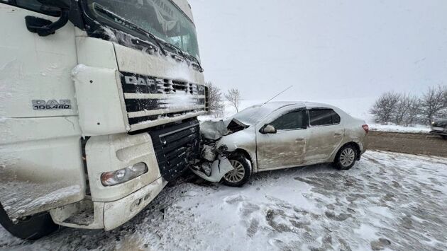 Авария произошла на трассе «Воткинск-Чайковский» 28 апреля около 18:00. На заснеженной дороге иномарку занесло. Водитель не смог справиться с управлением, в итоге машину вынесло на встречку, где она врезалась в стоящий на обочине «ДАФ».