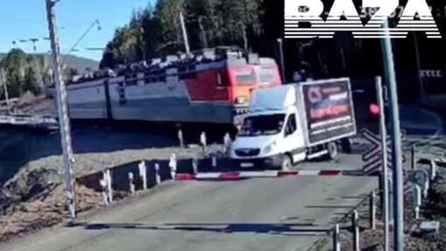 На видео попало, как поезд чудом не снес авто на переезде в Иркутской области