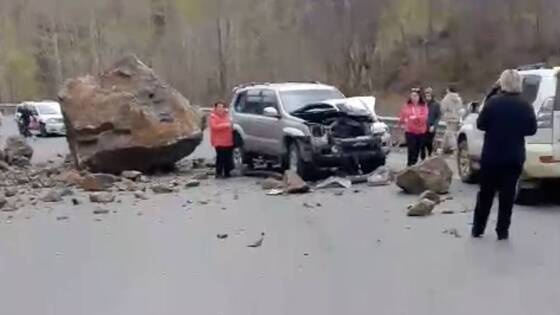 Гигантские валуны рухнули на проезжающие по трассе машины на перевале «Серебряный» в Приморье. О ДТП в регионе сообщает Telegram-канал «112».