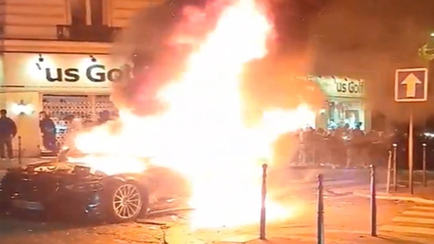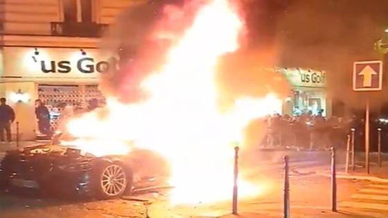 Позднее автомобиль обнаружили на авеню Марсо, что неподалеку от места происшествия. Разъяренные болельщики подожгли его, и он взорвался.