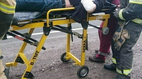 На месте происшествия спасатели деблокировали пострадавшего с помощью гидравлического инструмента «Медведь» и помогли транспортировать к машине скорой помощи.