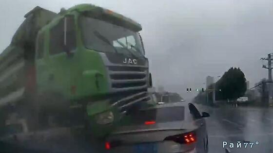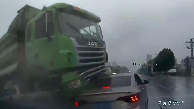 Согласно скудной информации, поступившей в Рай77° от китайских СМИ, водитель самосвала допустил серьёзную ошибку, предприняв попытку проехать оживлённый перекрёсток в самый последний момент.