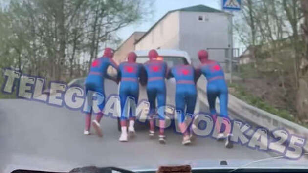 Во Владивостоке на видео попало, как люди в костюмах Человека-паука спасали авто