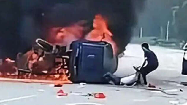 SCMP: китайский чиновник спас водителя из горящей машины и стал героем
