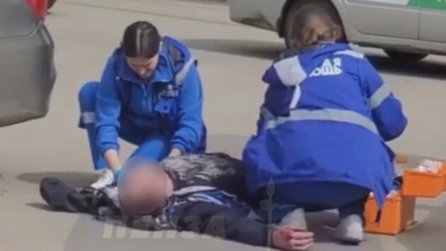 Медики вместе с сотрудниками ГАИ погрузили пострадавшего в машину скорой помощи. По словам автора ролика, позже мужчину забрал вертолет.