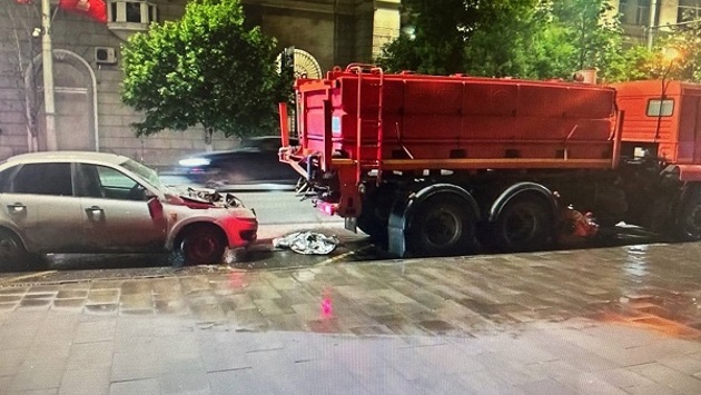 В центре Ростова легковой автомобиль врезался в поливальную машину