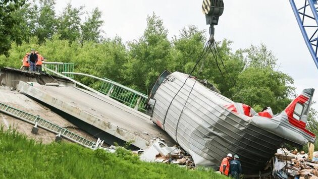 Обрушение автомобильного моста в Выгоничском районе Брянской области произошло вечером 31 мая. В этот момент по нему ехал грузовик. Обломки моста упали на проходивший под ним пассажирский поезд сообщением Климов – Москва.