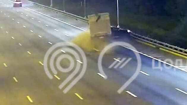 На МКАД грузовик разбил автомобиль об ограждение и попал на видео