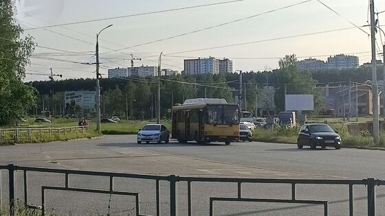 Ижевск. Удмуртия. На кольце по улице Автозаводской в Ижевске столкнулись автобус и легковушка. Об этом сообщают очевидцы ДТП.