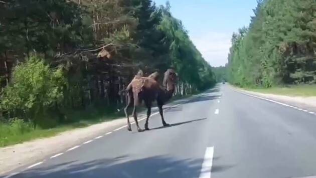 Верблюд устроил пробежку на российской трассе и попал на видео