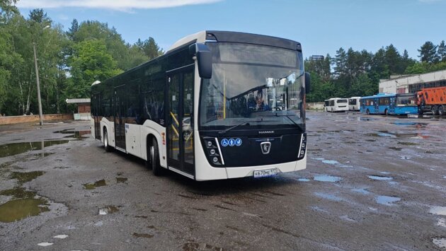 В Заречный поступил новый автобус КамАЗ. 12-метровая машина вмещает более 100 человек, она низкопольная, оснащена системой кондиционирования.