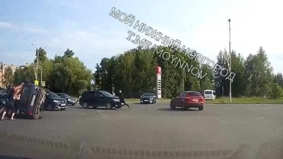 На кадрах видно, как на скорости в отечественное авто влетает кроссовер, от чего оно переворачивается на бок. Сразу после удара к машине стали подбегать другие водители и очевидцы аварии. Вероятно, сначала они хотели вытащить из салона человека, но этого сделать по какой-то причине не удалось. И тогда от пяти до семи человек, общими усилиями раскачав корпус машины, поставили ее обратно на колеса.