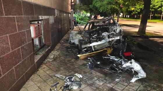 Столкновение двух иномарок в центре Краснодара произошло ночью 9 июня. В результате Mercedes полностью выгорел.