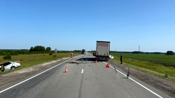 Предварительно установлено, что водитель автомобиля «Омода», женщина 1998 г.р., на 563 км автодороги Тюмень – Омск выехала на встречную полосу, где врезалась в «Хендай» под управлением мужчины 1971 г.р. После этого она столкнулась с автомобилем «Датсун», а затем с автомобилем «Вольво», сообщила региональная полиция.