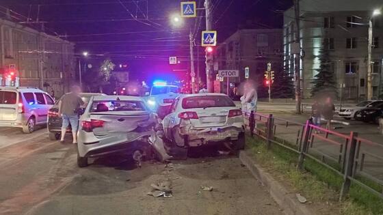 Около 22:45 на улице Удмуртской лихач столкнулся с «Киа Рио», «Лада Веста» и «Хендай Солярис». В момент аварии все автомобили стояли на светофоре. Водителю первой иномарки оказали разовую медицинскую помощь.