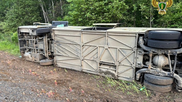 Инцидент произошел около трех часов ночи 14 июня в районе 139 километра автодороги "Хабаровск-Лидога-Ванино". По данным ведомства, водитель автобуса Yutong не справился с управлением, съехал с дороги и опрокинулся в кювет.