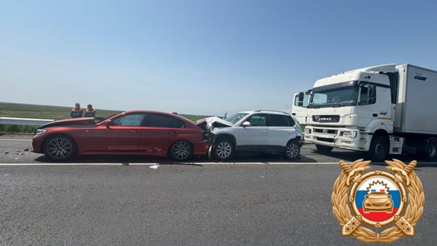 Ростовская область, 14 июня 2025. DON24.RU. На 11 км + 500 м автодороги Азов – Староминская произошло ДТП с участием четырех автомобилей, три человека были доставлены в медучреждение с травмами. Об этом сообщили в пресс-службе Госавтоинспекции Ростовской области. Авария произошла сегодня днем. По данным источника, КамАЗ в составе полуприцепа «Карголайн» не выбрал безопасную скорость и врезался в впереди движущийся Volkswagen Tiguan. Последний по инерции врезался в BMW 320, а тот, в свою очередь, допустил столкновение с автомобилем Toyota. «В результате ДТП водитель автомобиля Volkswagen Tiguan 1955 года рождения и пассажиры 1950 и 1974 года рождения получили травмы и доставлены в медицинское учреждение», – пишет источник. Правоохранители устанавливают детали аварии.