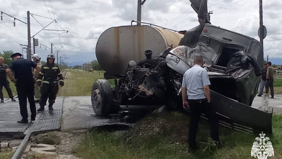 В Беслане в Северной Осетии на железнодорожном переезде на улице Нартовская столкнулись локомотив и «КамАЗ», перевозивший цистерну. Об этом сообщает республиканское управление МЧС в своем Telegram-канале.