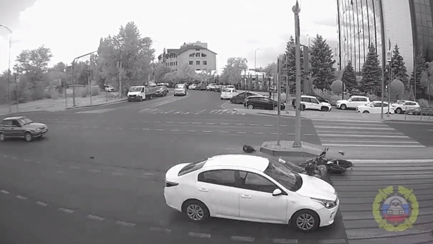 Момент столкновения мотоцикла и иномарки в Волгограде попал на видео