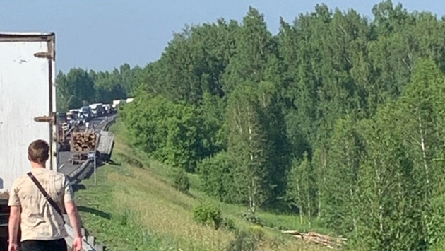После аварии на трассе собралась гигантская пробка. О состоянии водителя информации пока нет.