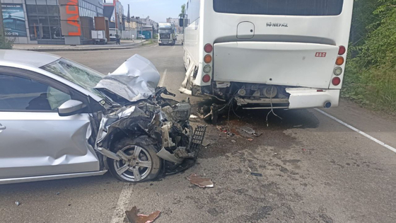 Иномарка жестко влетела в автобус и "ГАЗель" в Новокузнецке