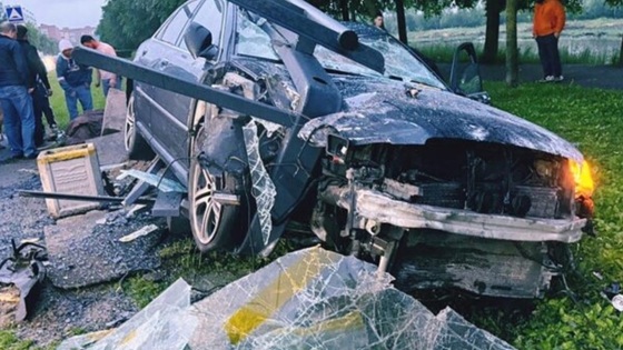 Audi на огромной скорости «снес» автобусную остановку с человеком в Санкт-Петербурге