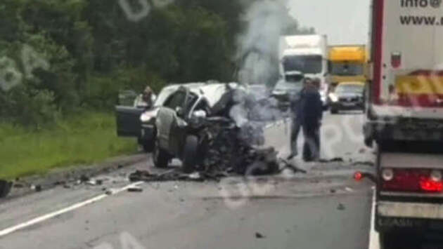 В Подмосковье Chery размоталась в ДТП на встречке с грузовиком и попала на видео