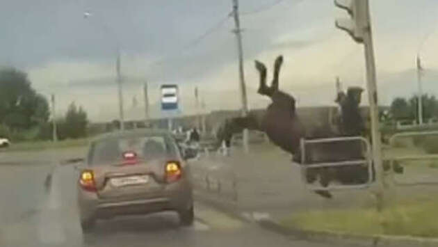 В городе Магнитогорск Челябинской области автомобиль сбил всадника на лошади, который переезжал дорогу по пешеходному переходу. Видео опубликовал 112. По данным Telegram-канала, это произошло на улице Зеленый Лог. После случившегося конь испугался и ускакал от лежащего на асфальте хозяина. В апреле в Горно-Алтайске конь бегал по проезжей части и напугал женщину возле светофора. Очевидцы запечатлели инцидент на камеру. На кадрах видно, как конь ткнул носом женщину у светофора. Та сильно удивилась, когда обернулась. Кроме того, животное идет по проезжей части в необорудованном для пешеходов месте. Сотрудники ДПС остановили коня. В том же месяце водителей Подмосковья предупредили о лосях, которых привлекает рассыпанная на дорогах соль для борьбы с гололедом. Столкновение с ними может закончиться тяжелой аварией. Как правило, такие ДТП происходят в ночное время суток.