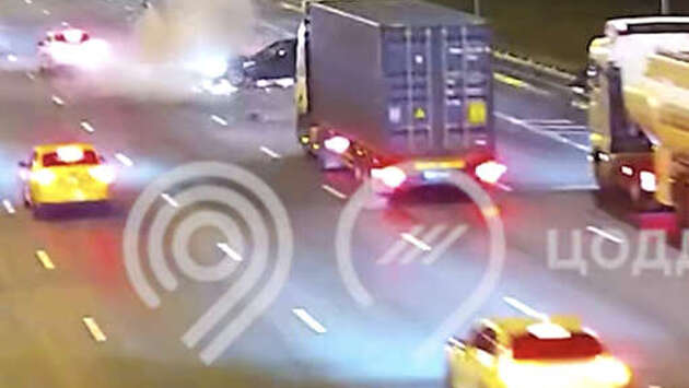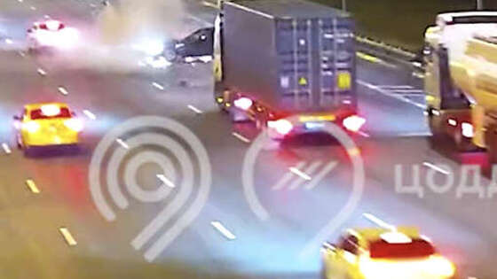 На МКАД водитель боком врезался в самосвал и попал на видео