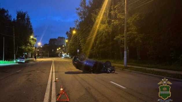 Водитель легковушки попал в больницу после ночного ДТП с переворотом