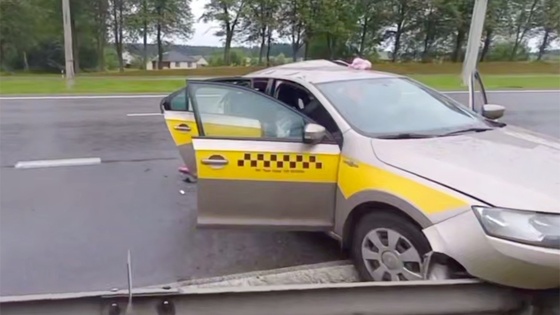 Он врезался в такси Skoda, который ехал в попутном направлении. От удара такси отбросило на обочину в дорожное ограждение.