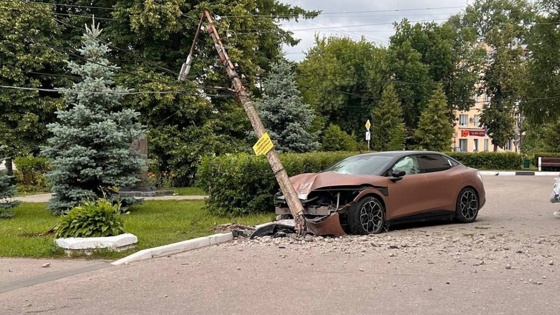 Водитель на электроавтомобиле разгромил сквер и врезался в столб на Бору
