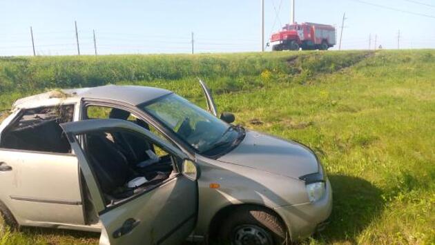 В Октябрьском районе Курской области опрокинулась «Лада Калина»