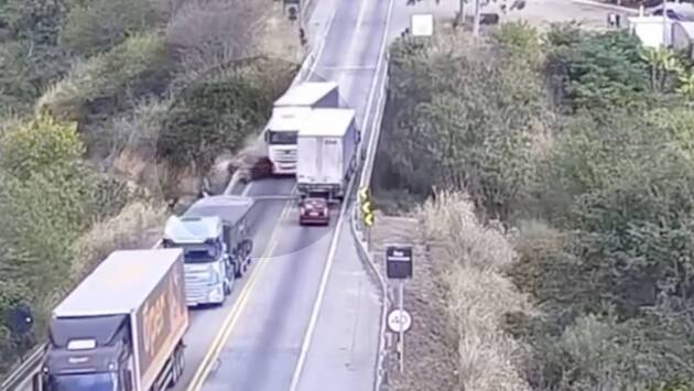 Инцидент произошел 26 июня на узкой дороге недалеко от бразильского города Сальвадор, штат Баия. На запись дорожной камеры попал момент, когда вылетевший на встречную полосу грузовик с трейлером ушел от лобового столкновения с другим грузовиком, вернулся в свой ряд и протаранил ехавший перед ним легковой автомобиль.