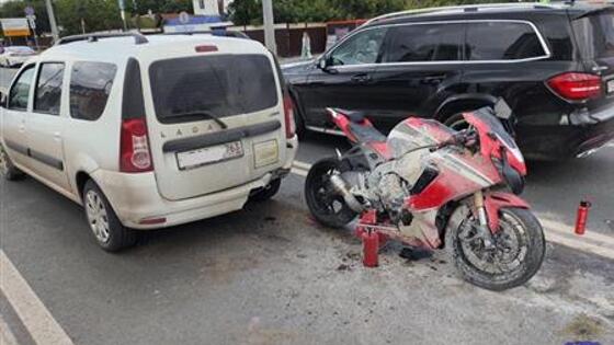 В Самаре мотоциклист въехал в Lada Largus на Московском шоссе