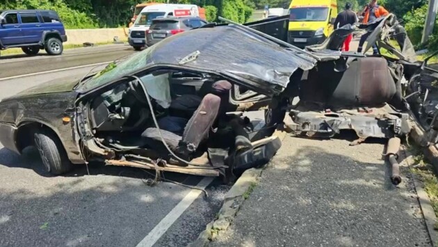 Судя по кадрам с места ДТП, удар был такой силы, что отечественную легковушку разорвало на две части. Водитель погиб до приезда скорой помощи, сообщает Госавтоинспекция Сочи в Telegram.
