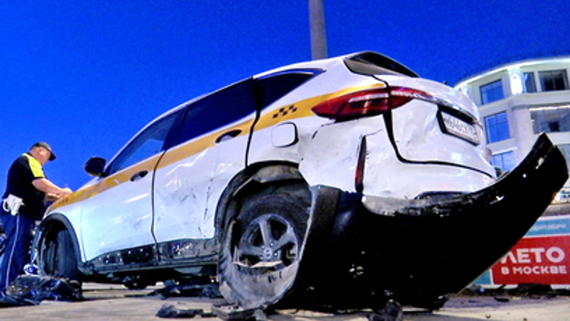 В Москве выясняют причины ночной аварии на Лубянке. Там BMW врезался в припаркованные на стоянке такси и вылетел на тротуар.