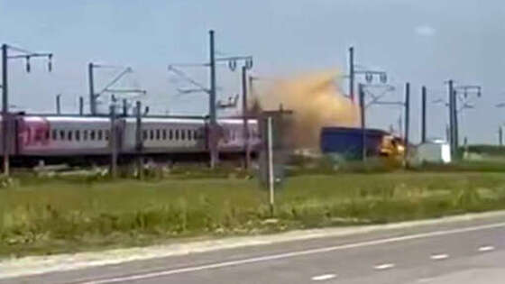 На Ставрополье "КамАЗ" врезался в пассажирский поезд и попал на видео