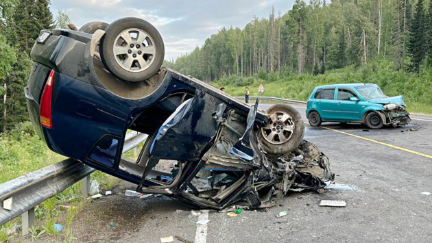 Авария произошла накануне вечером на 118 километре федеральной автодороги Р-257 "Енисей". Mazda выехала на встречную полосу и столкнулась с Toyota Opa, после чего вторая иномарка ударила попутный автомобиль Toyota Corolla Fielder. Одна из машин перевернулась.