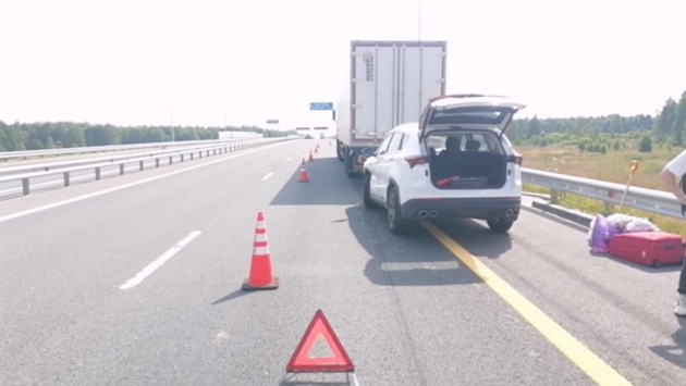 32-летний водитель Jetour, по предварительной информации, уснул за рулем. Автомобиль совершил касательное столкновение с отбойником. Затем водитель не выбрал безопасную дистанцию до машины, которая ехала перед ним, и иномарка влетела в «КамАЗ», за рулем которого был 40-летний мужчина.