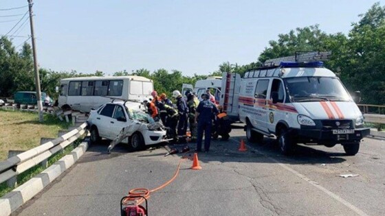 Автобус столкнулся с легковушкой на Кубани, пострадали пассажиры