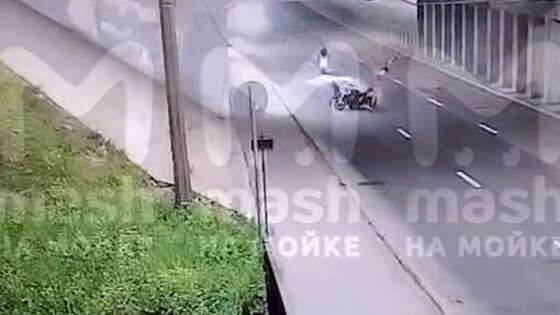 В Петербурге на видео попало, как мотоциклист на скорости снес самокатчика